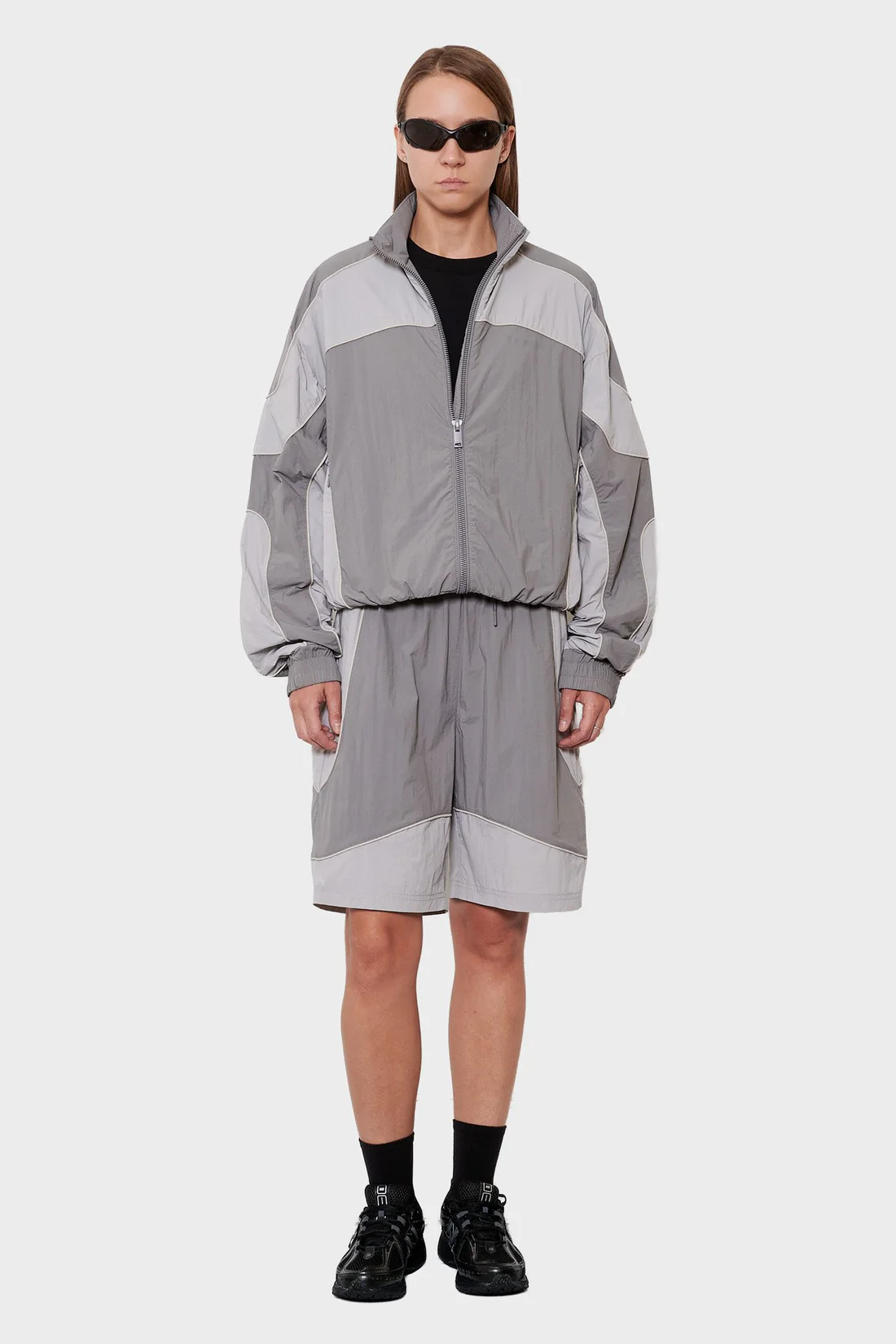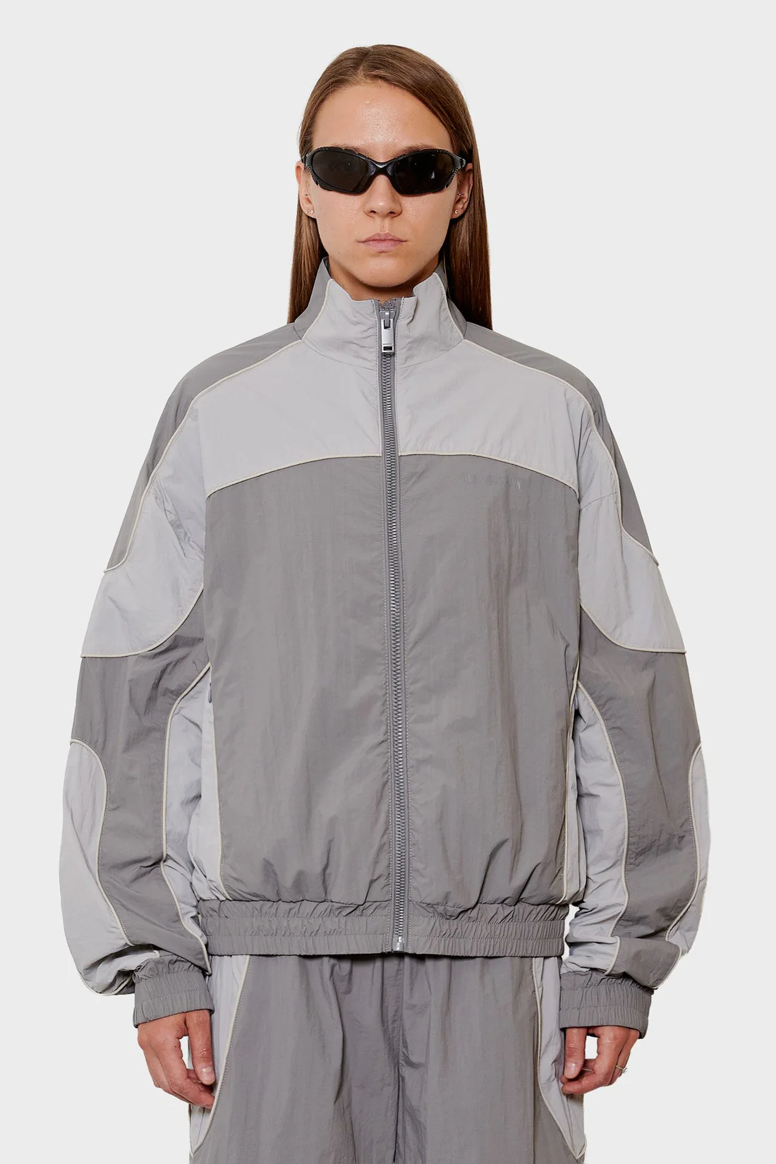 • Szara sportowa kurtka z kontrastowymi panelami