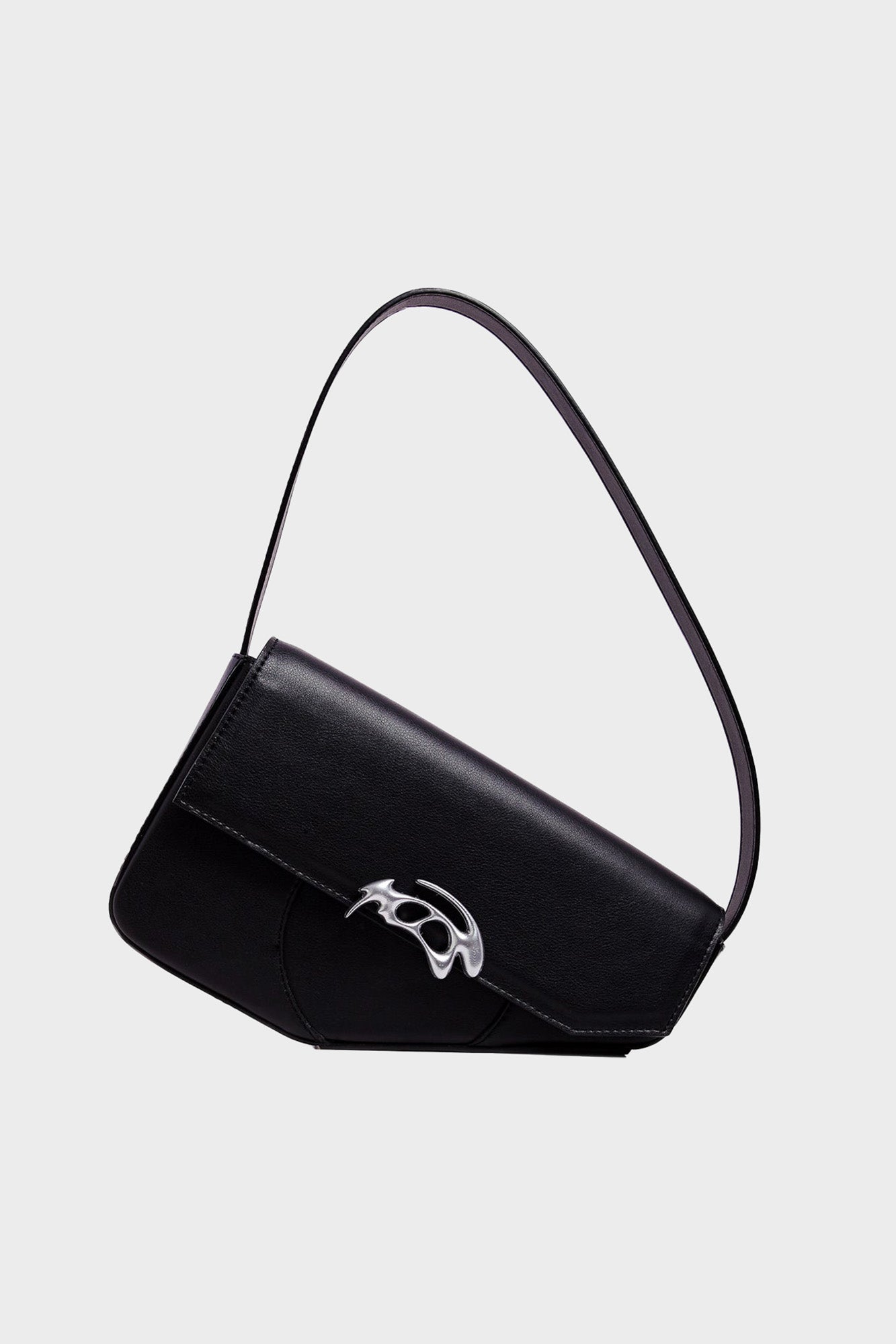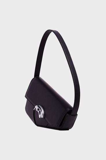 - Black bag with an asymmetrical design