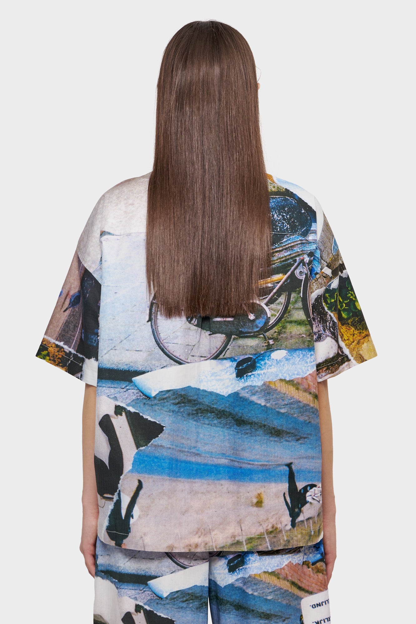 Cotton twill shirt with all-over seasonal photo print. Slightly oversized cut with straight hem.