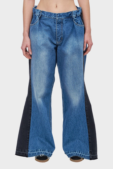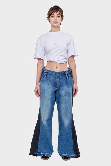 - Wide leg jeans with contrasting stripes
