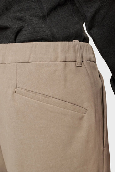 Swobodny krój w talii, zwężane nogawki ku dołowi